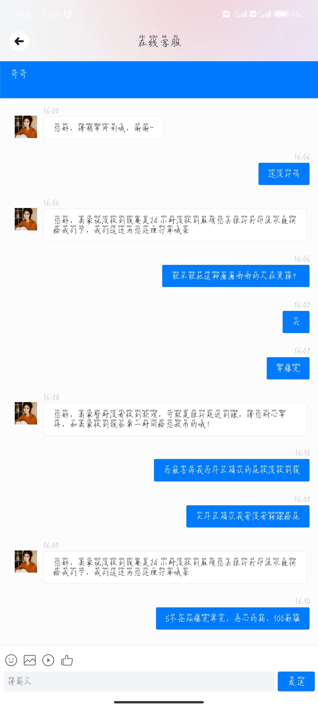 在游戏平台上说注册送48,然后充值直接放单给你转账,直接诈骗你的钱,说没收到。不信邪钱多可以去试
