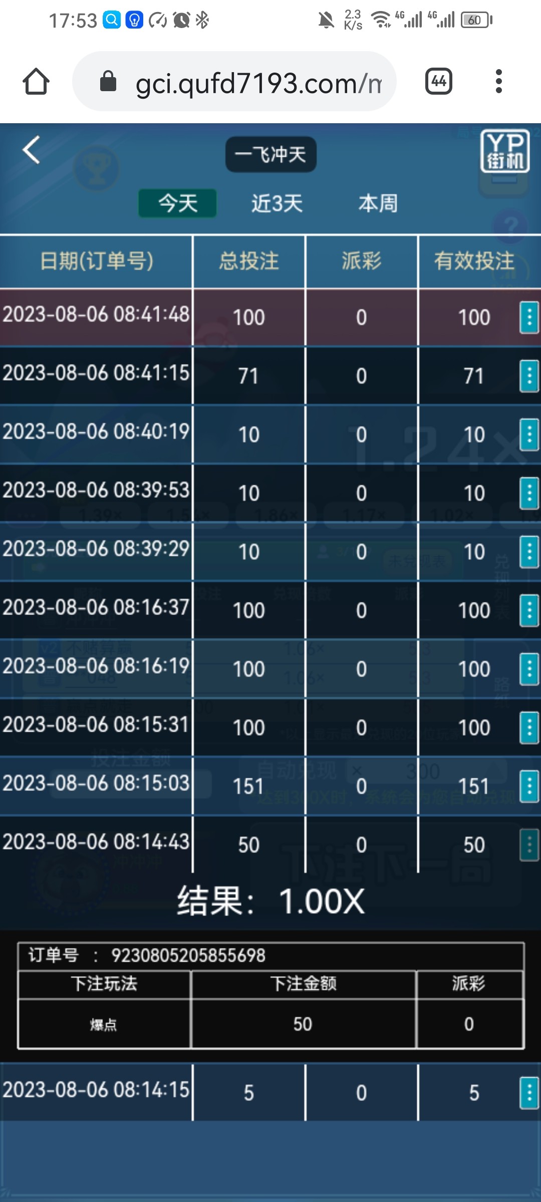 一飞冲天专门盯着真人杀,根本赢不了,除非一直几块钱吃蓝色,加注直接长白山