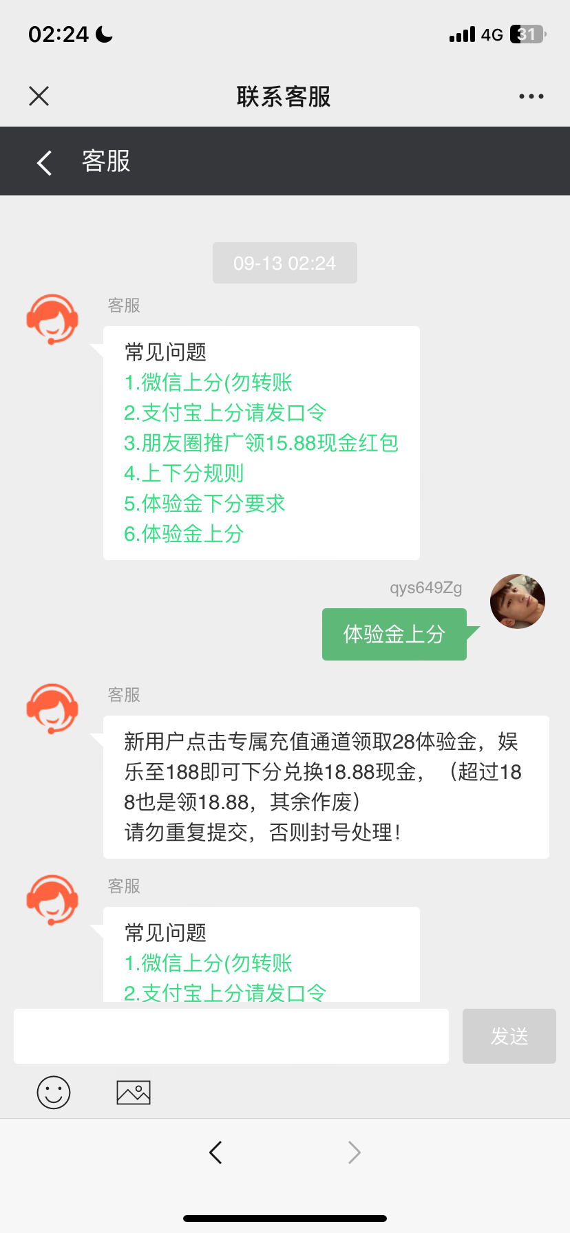 新用户点击专属充值通道领取28体验金,娱乐至188即可下分兑换18.88现金,(超过188也是领18.88,其余作废)