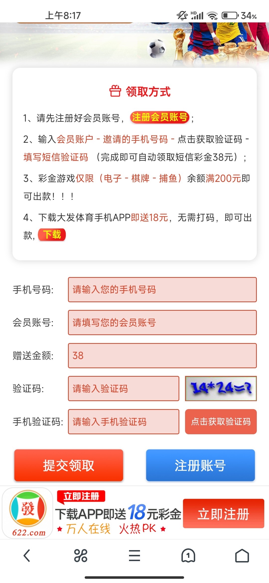 新用户注册绑卡手机号碰瓷送38彩金,还有下载APP送18活动 具体自测。