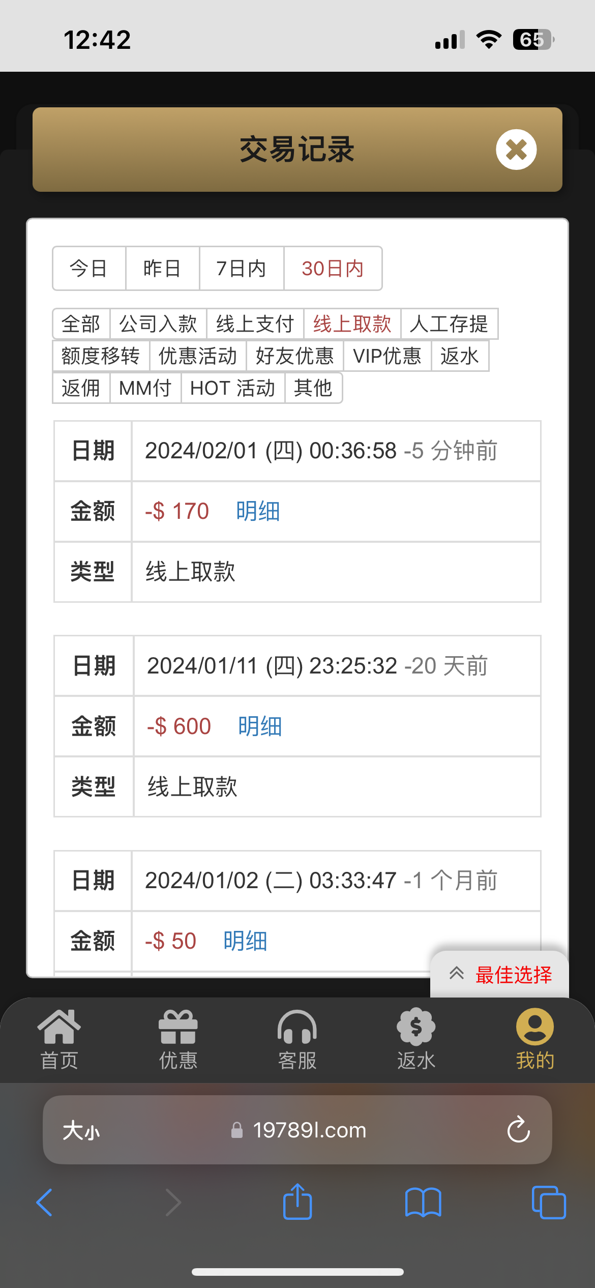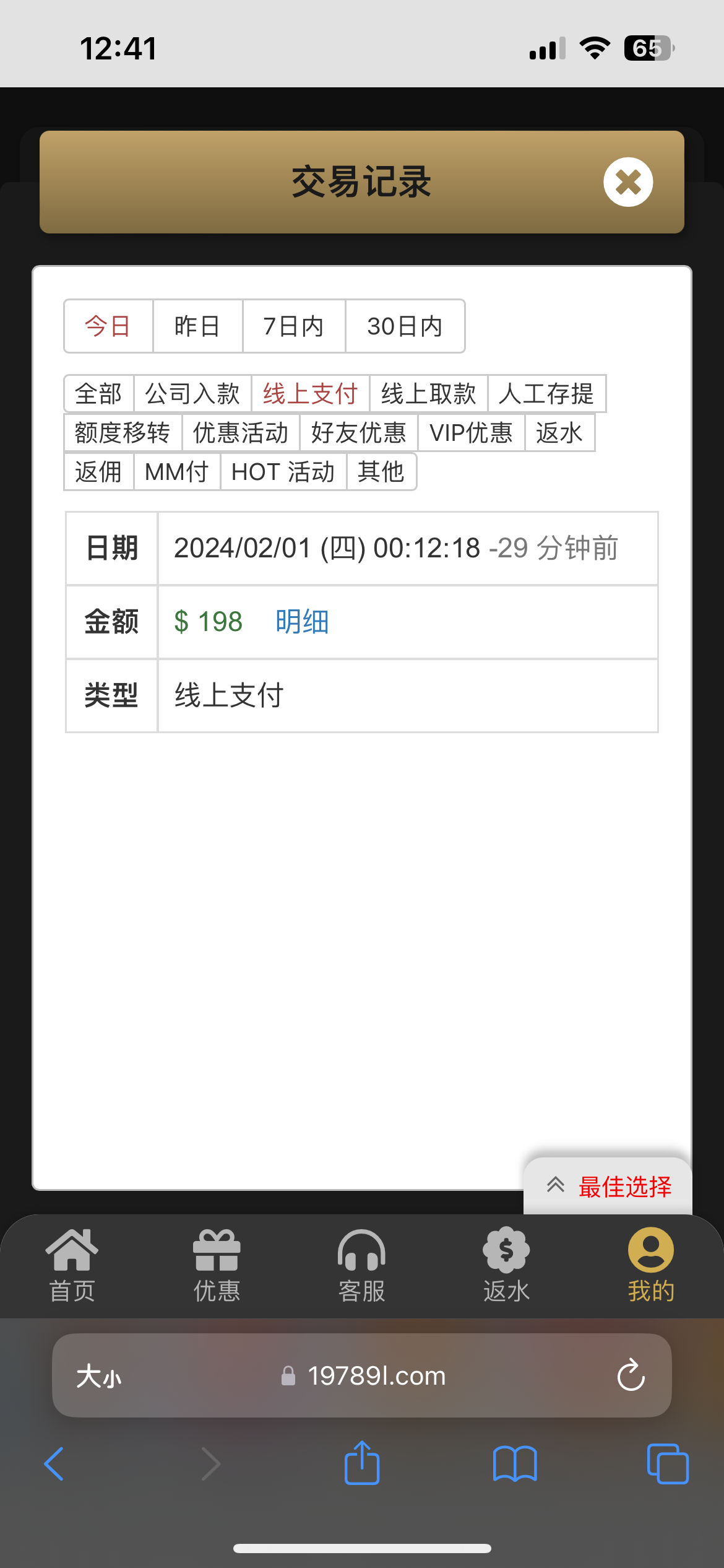 冲了198 提了170 一直玩招财猫 平拉出来的免费 0.4 28倍数 就是不给连 爆了8块钱 180又去玩tp的过新年 也是不给免费 输的还有170 又去玩麻将2 一直都不爆 剩了150想ag梭哈 想了一下算了 梭哈了一把闲五十 挂逼了 最后一百 直接打女王 开四块钱摇 一直在130徘徊 输的还有三十多都慢慢报上去 太累了 不给 来个免费爆三十 直接提了170 赢了70块钱0