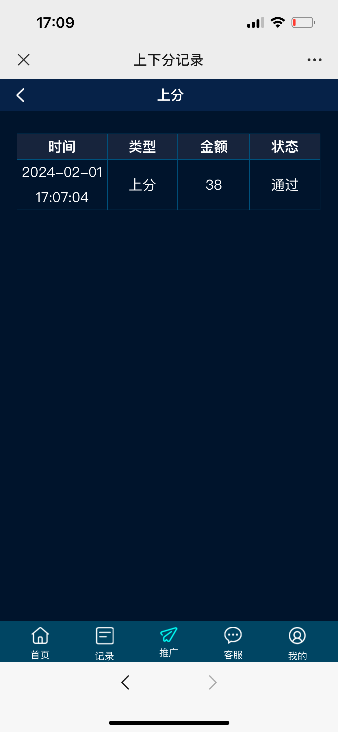 找在线客服加微信截图UID 然后充值的地方选体验金通道提交38 达到188下分18