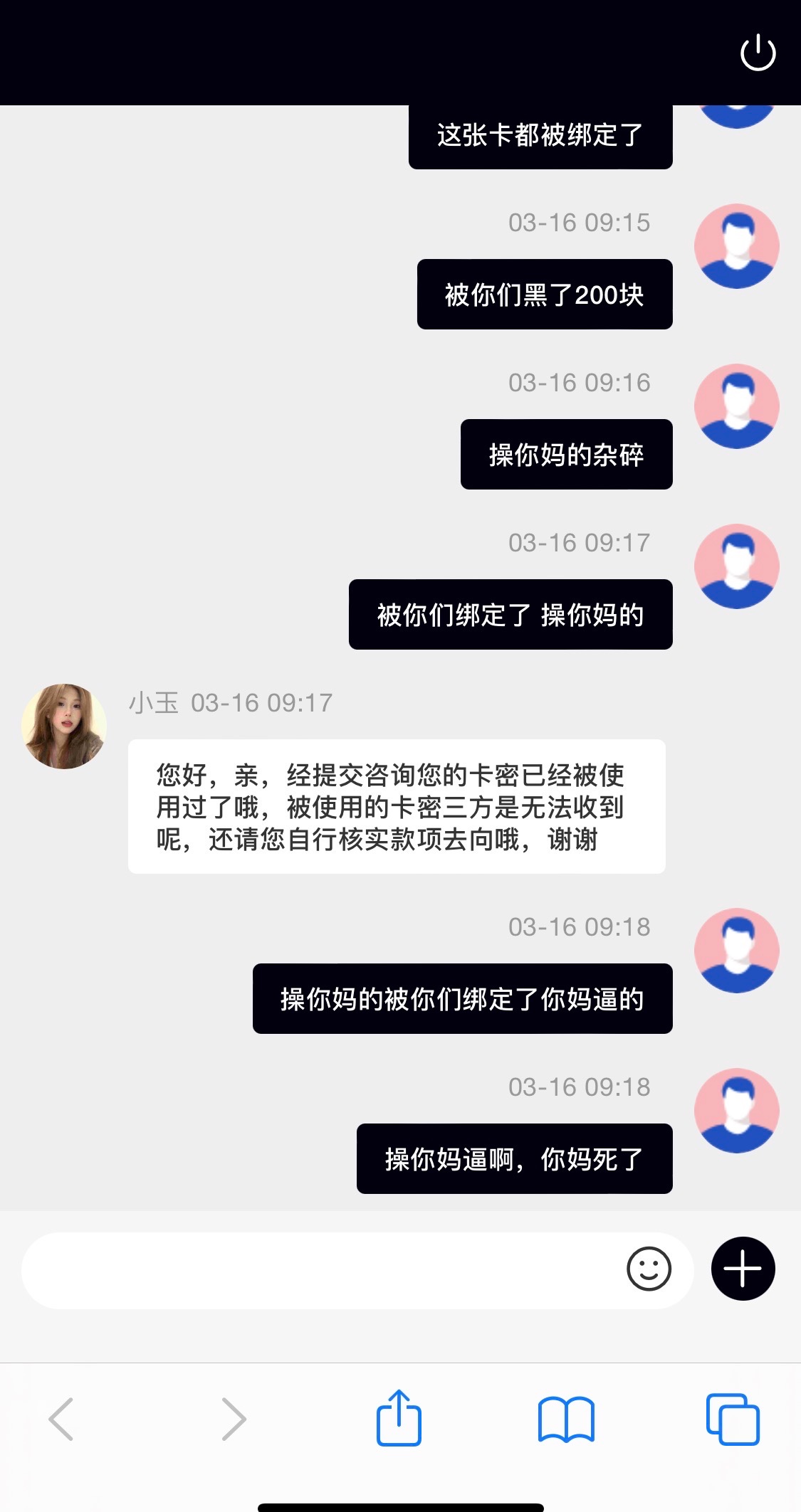 操他妈被黑了200块充上去了狗日的说卡被用了我操被黑了200块