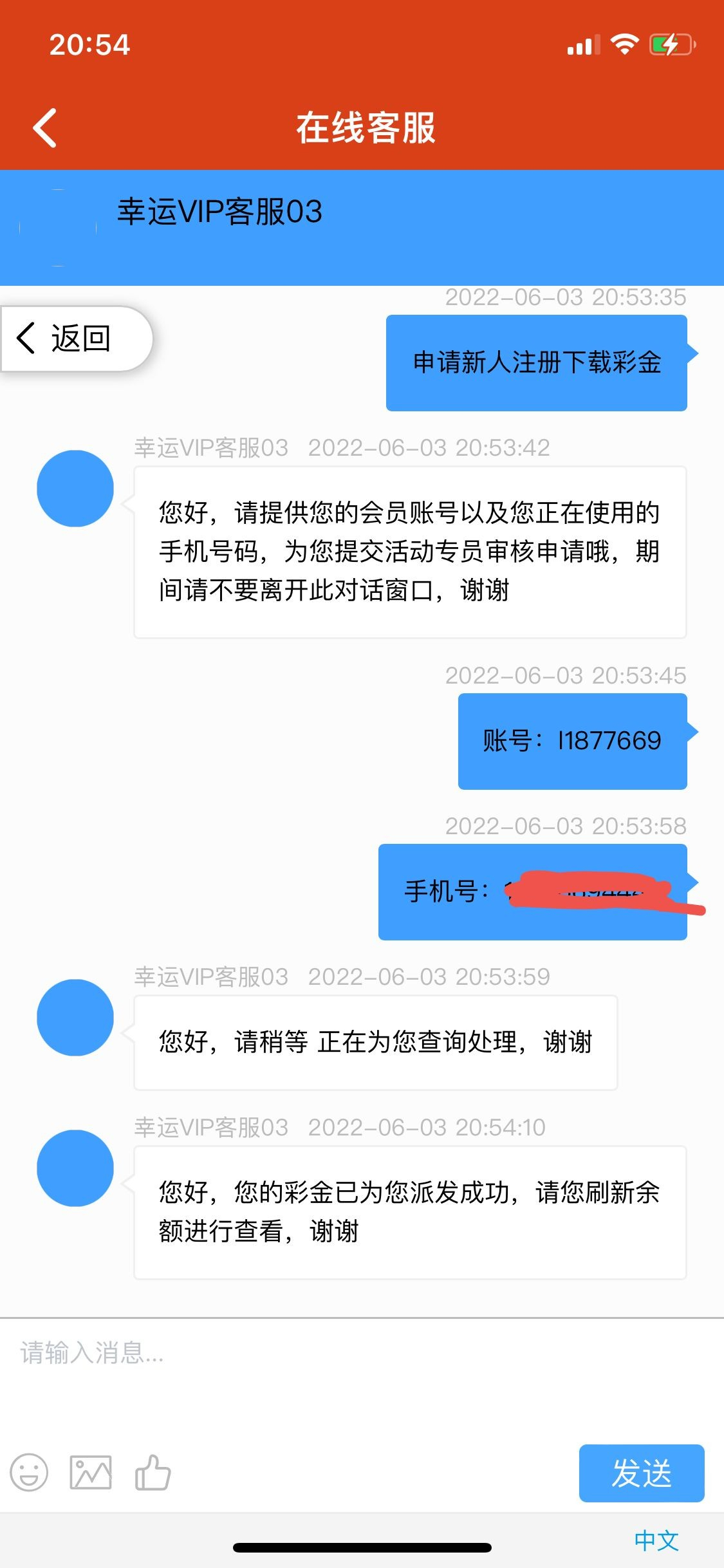 找在线客服申请新人开户彩金送30最低100即可提现