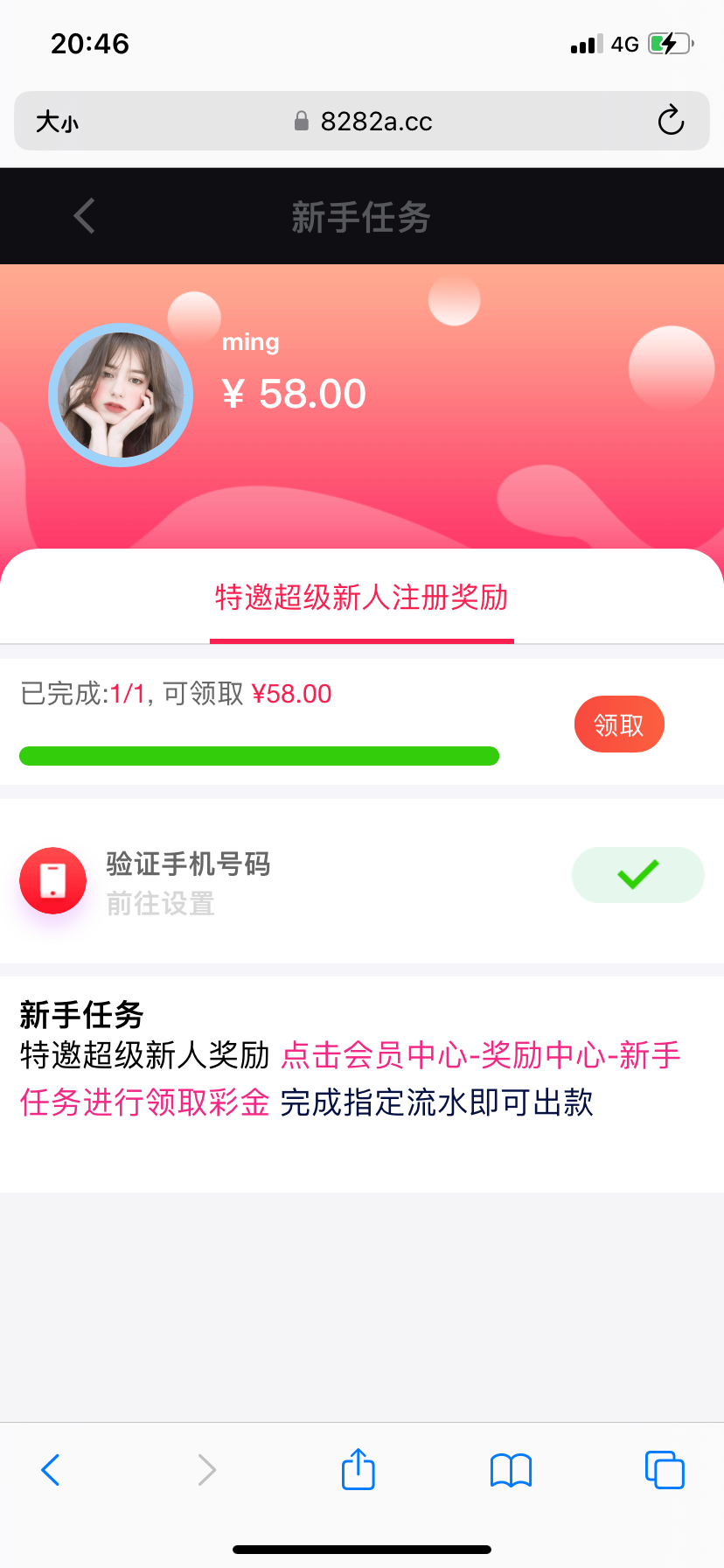 应该是特邀碰瓷吧反正我几个手机号都有 提款自测没打出来 注册完直接个人中心奖励中心领https://www.8282a.cc/m/home