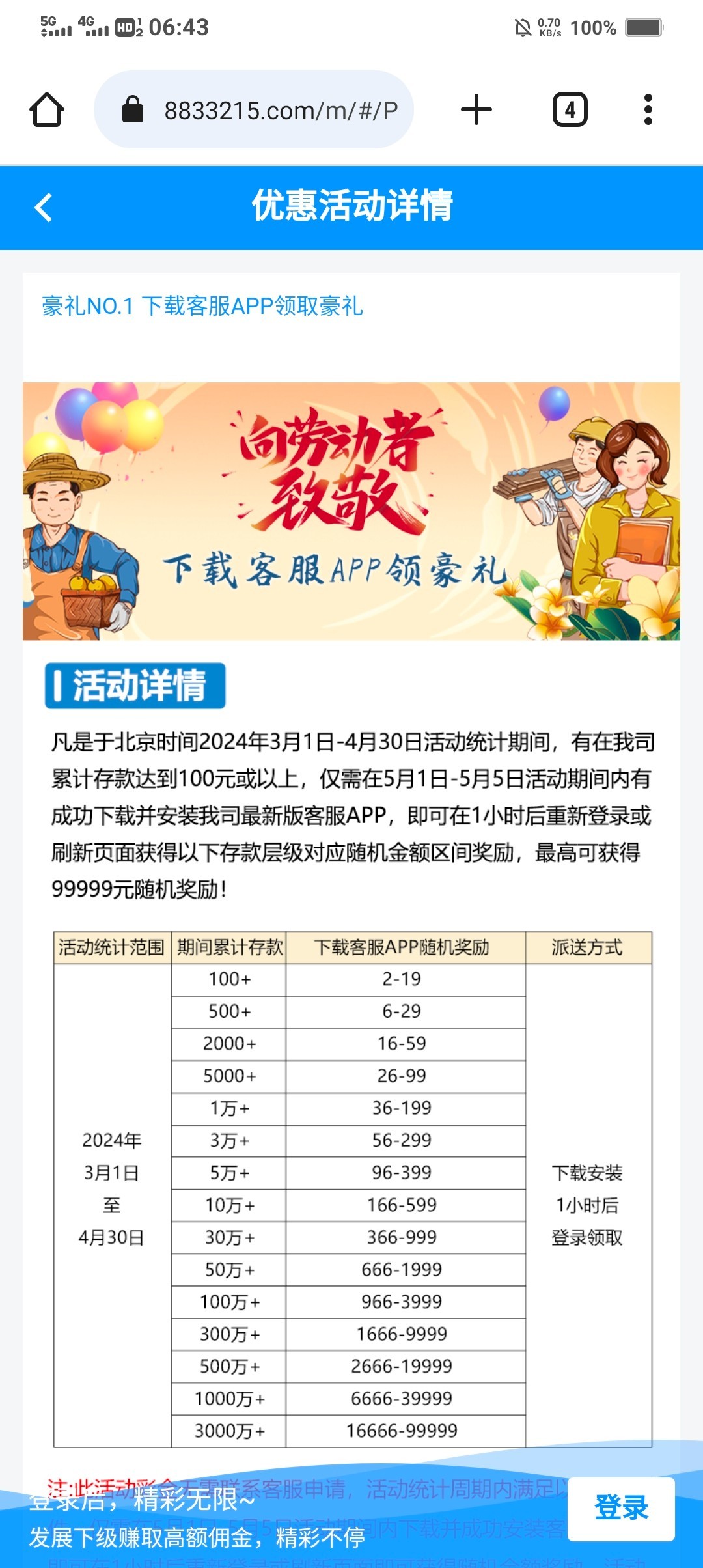 3月份-4月份历史存款100+回馈 满足五一下载app登陆即可领取