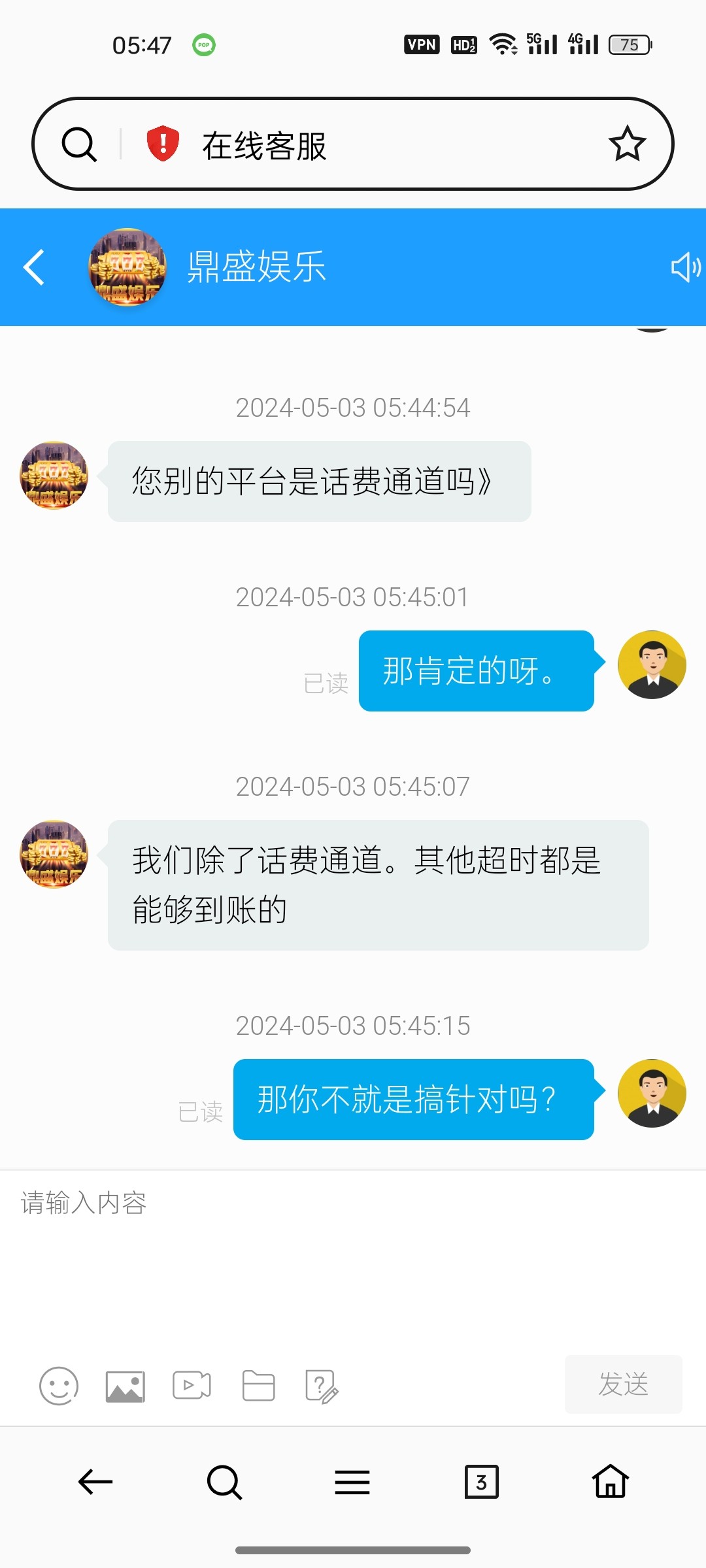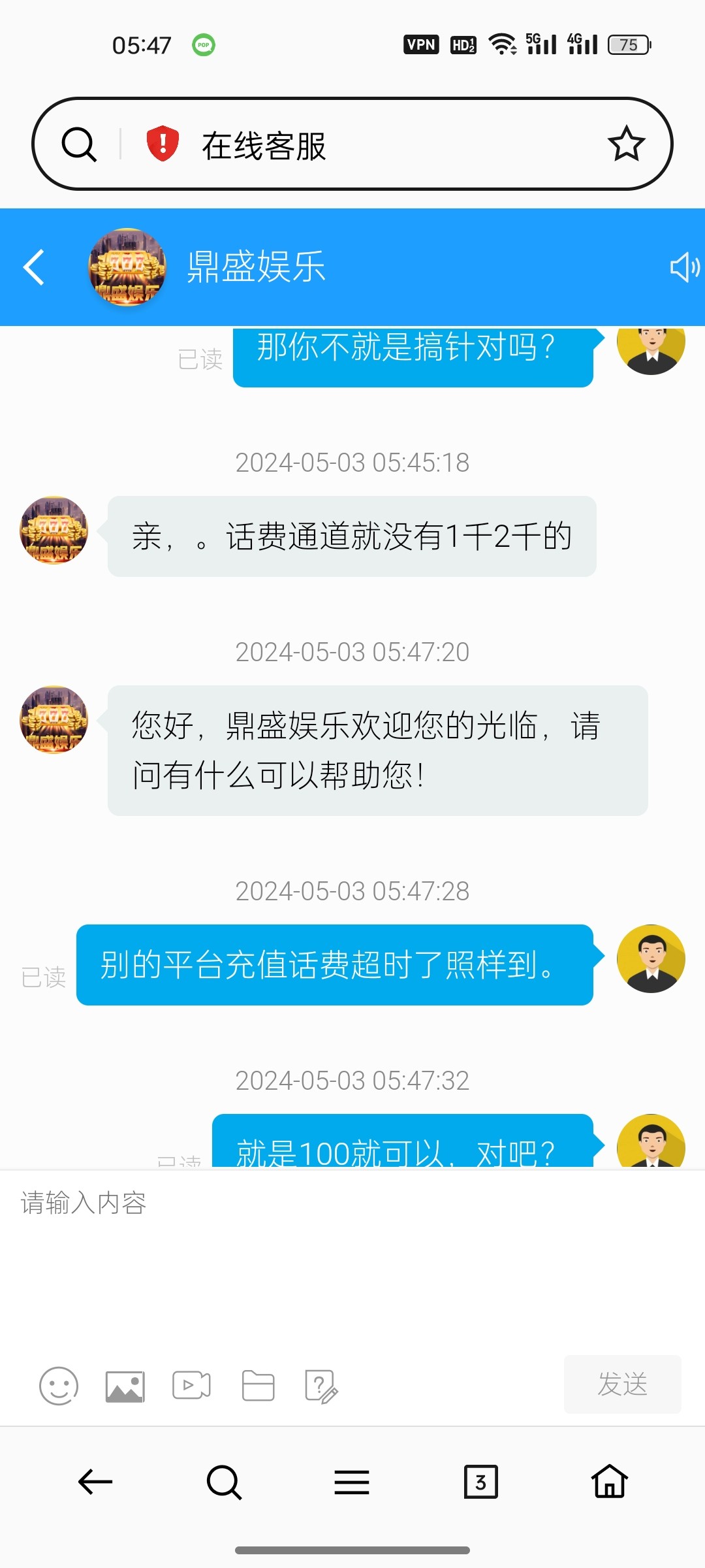 我话费充值100块钱,我超时五秒钟就跟我说超时了不到账,真他妈6。第三方直接黑了,真是活见久了,妈的,遇到这个傻逼台子。