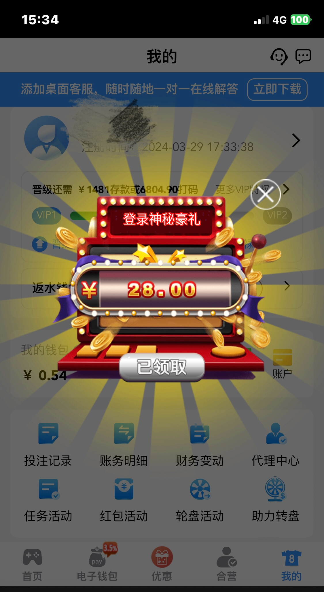 小篮板今天回馈28块钱