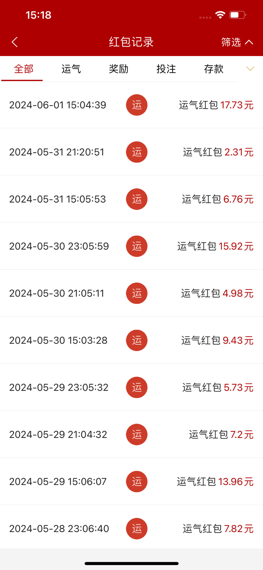 我充过几百,领过几次都只有0.几就没领了,,卧槽那垃圾280我单笔1万,现在每天红包都不超过2的,早知道充773了,还能撸红包每天三次