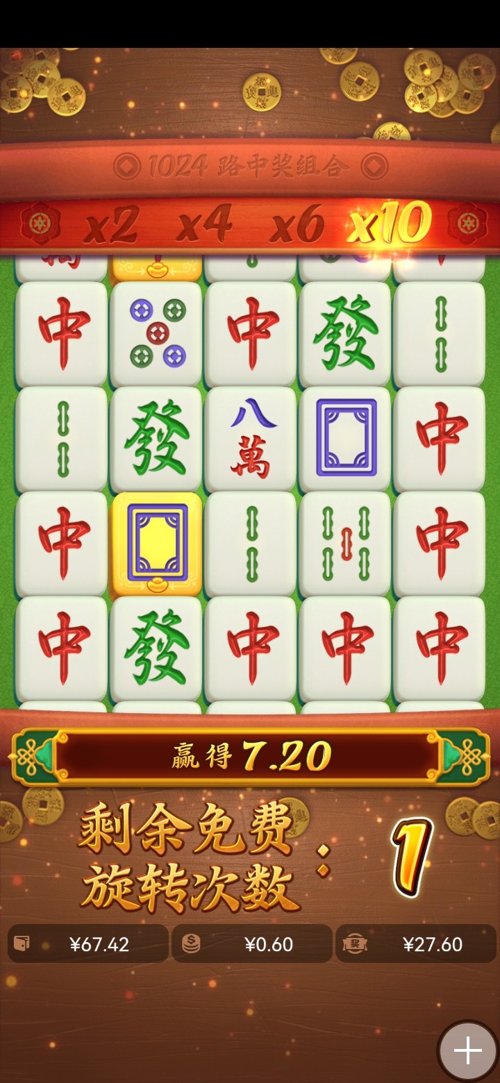 我来回答,从小到初中数学永远满分,一条五星连珠红中的中奖路是你底分的4倍,第二排掉下来一个红中是3✖️1✖️2✖️1✖️3=18条中奖路,18条中奖路✖️底分0.6✖️4=43.2,10倍的红中再✖️10=432