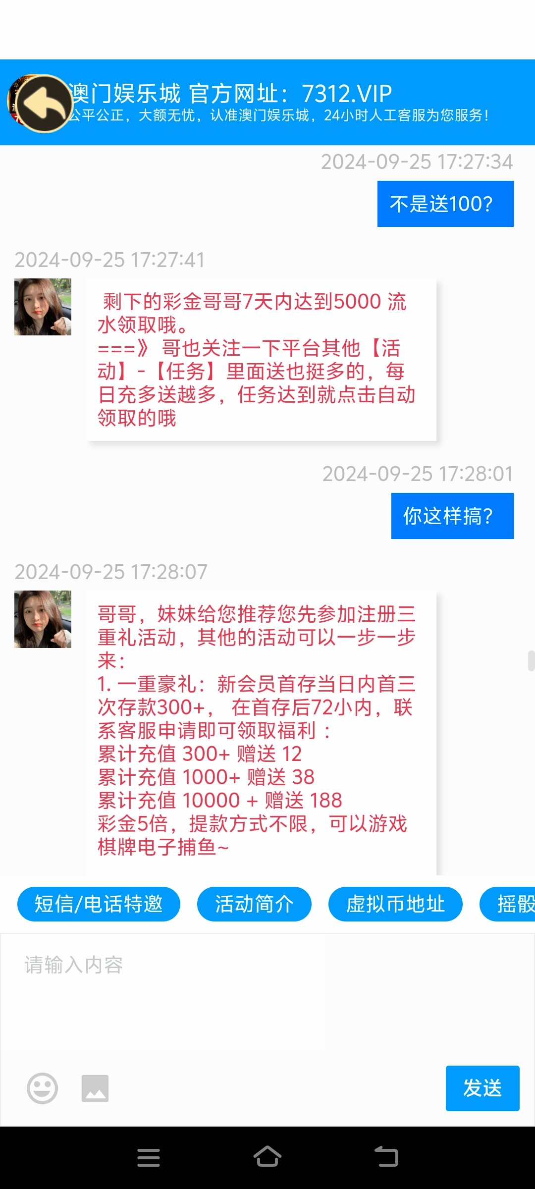 7312.vip这傻逼台老哥们注意了一百块钱都骗