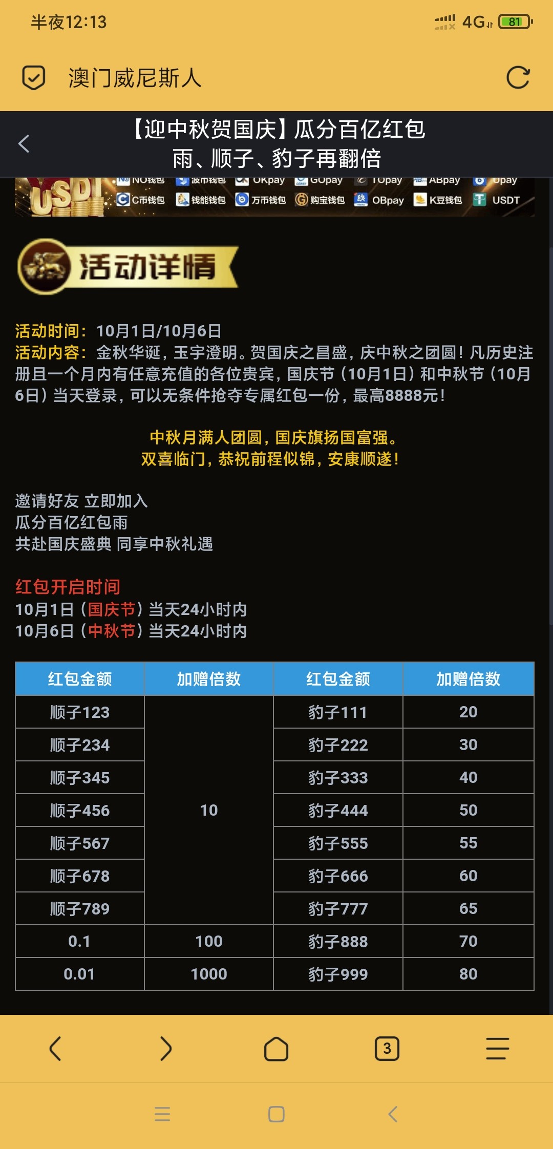 【威尼斯人712】双节红包雨翻倍