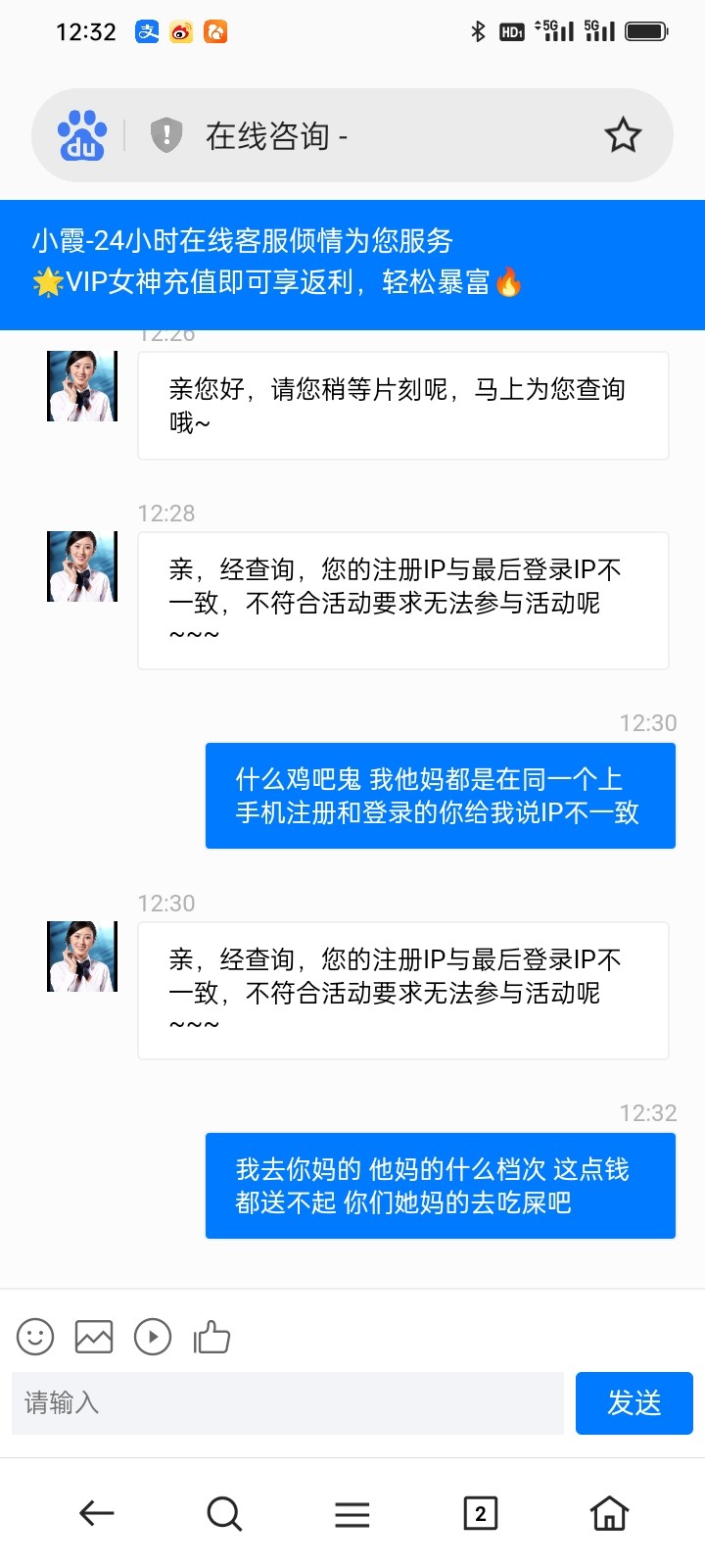 傻逼客服换了五个浏览器没一个回的