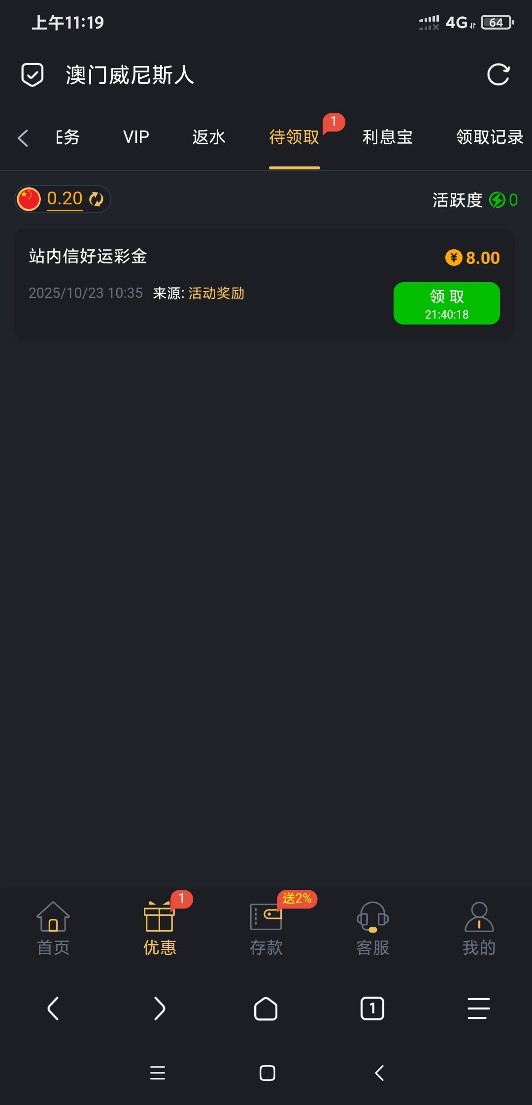 上号待领取直接领,有就有没有就没有,我是这个星期充过30,账号有活跃度。