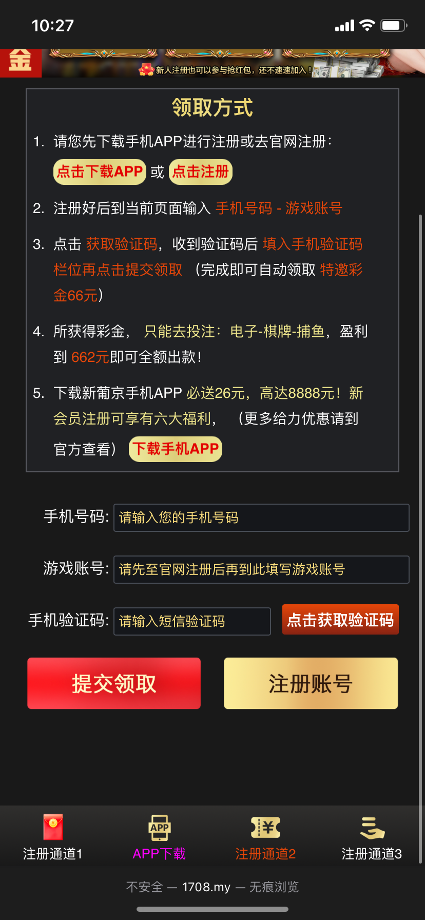 http://1708.my/#/ 特邀秒66 660可以出款,试试吧 ,万一有呢