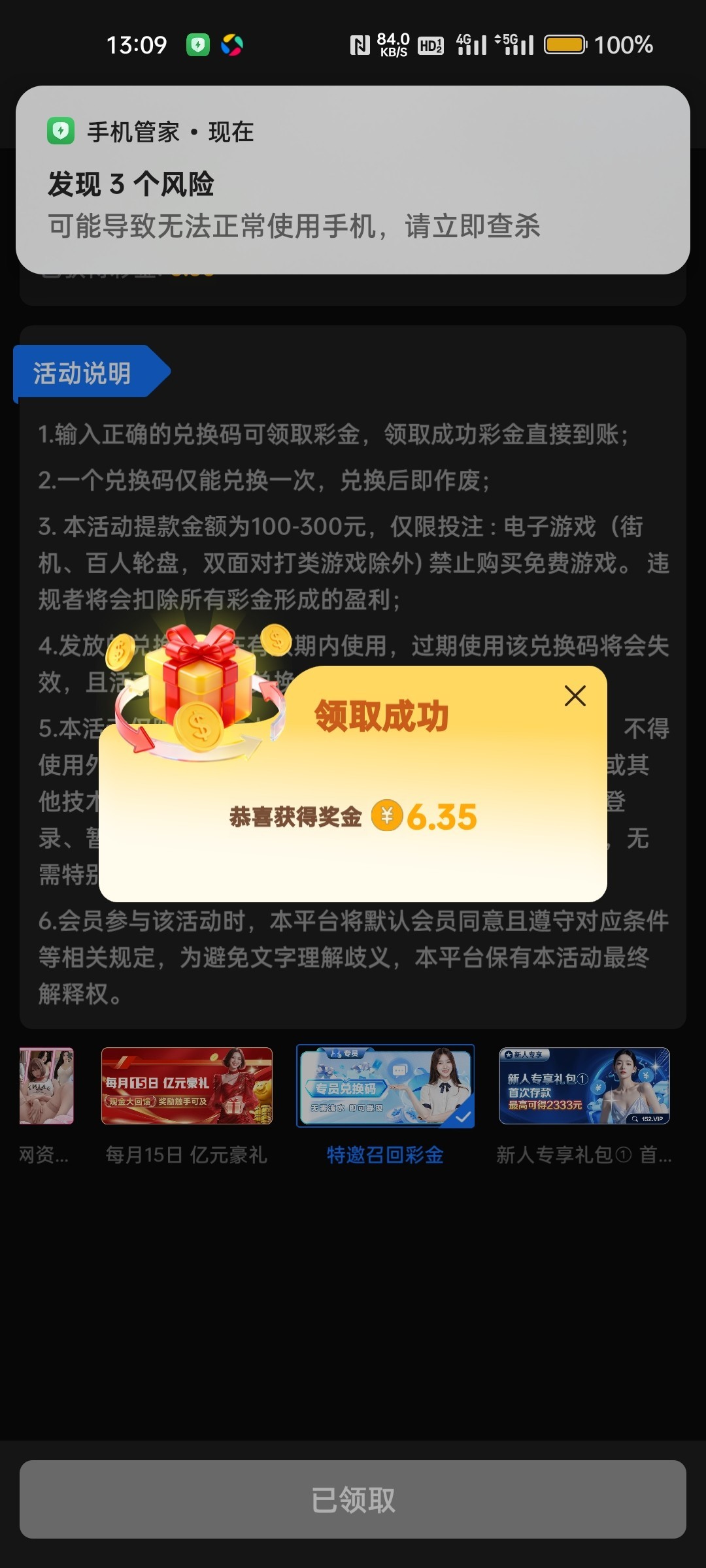 感谢了,最后一块进胡爆了四百多可惜只能提300但也知足了,前天上头全部挂逼,吃了两天挂面,终于可以改善伙食了…