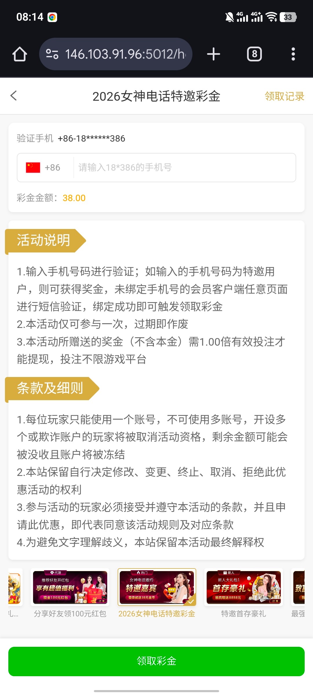 注册账号自助领取 38彩金 (白嫖即可)