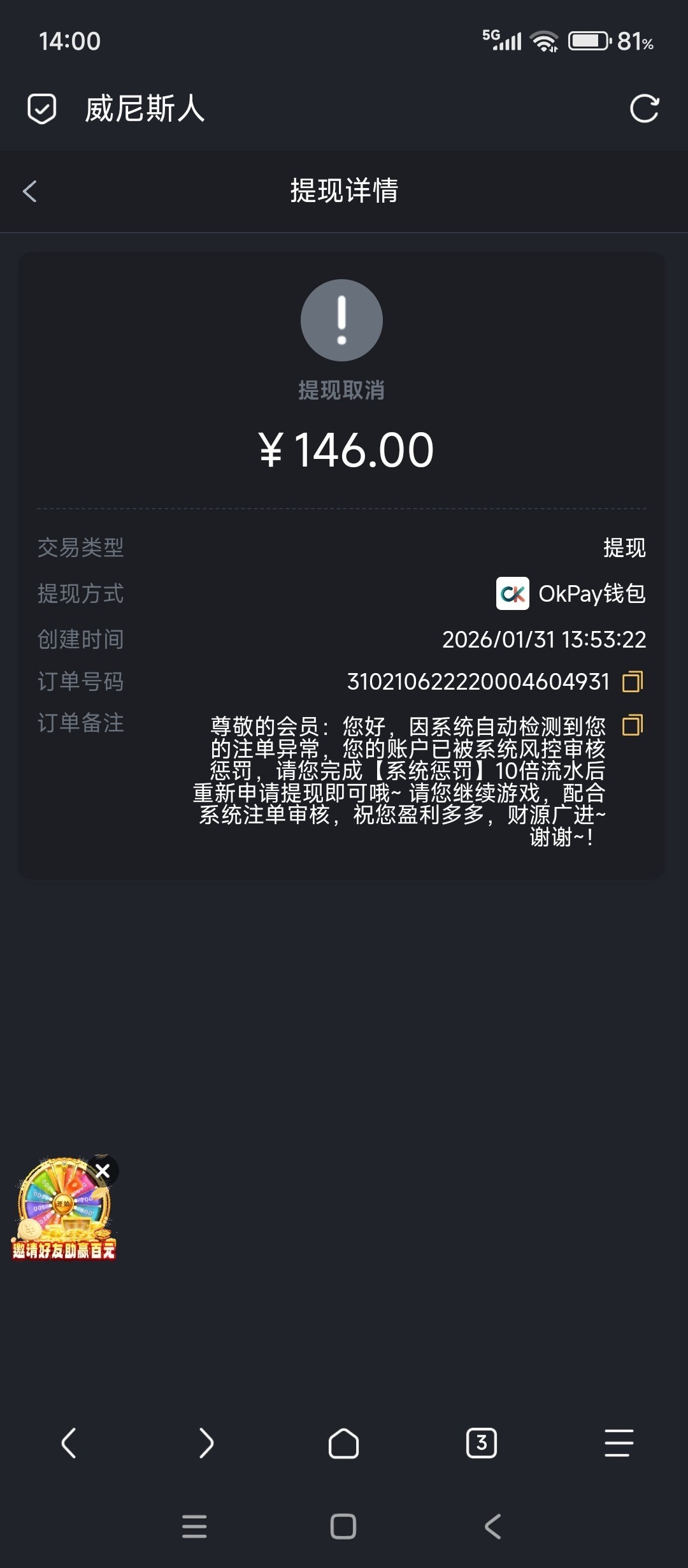 被黑金额:
