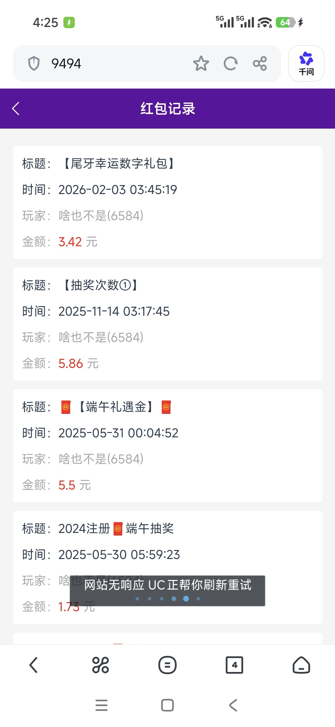 白嫖3块上103,9494台子