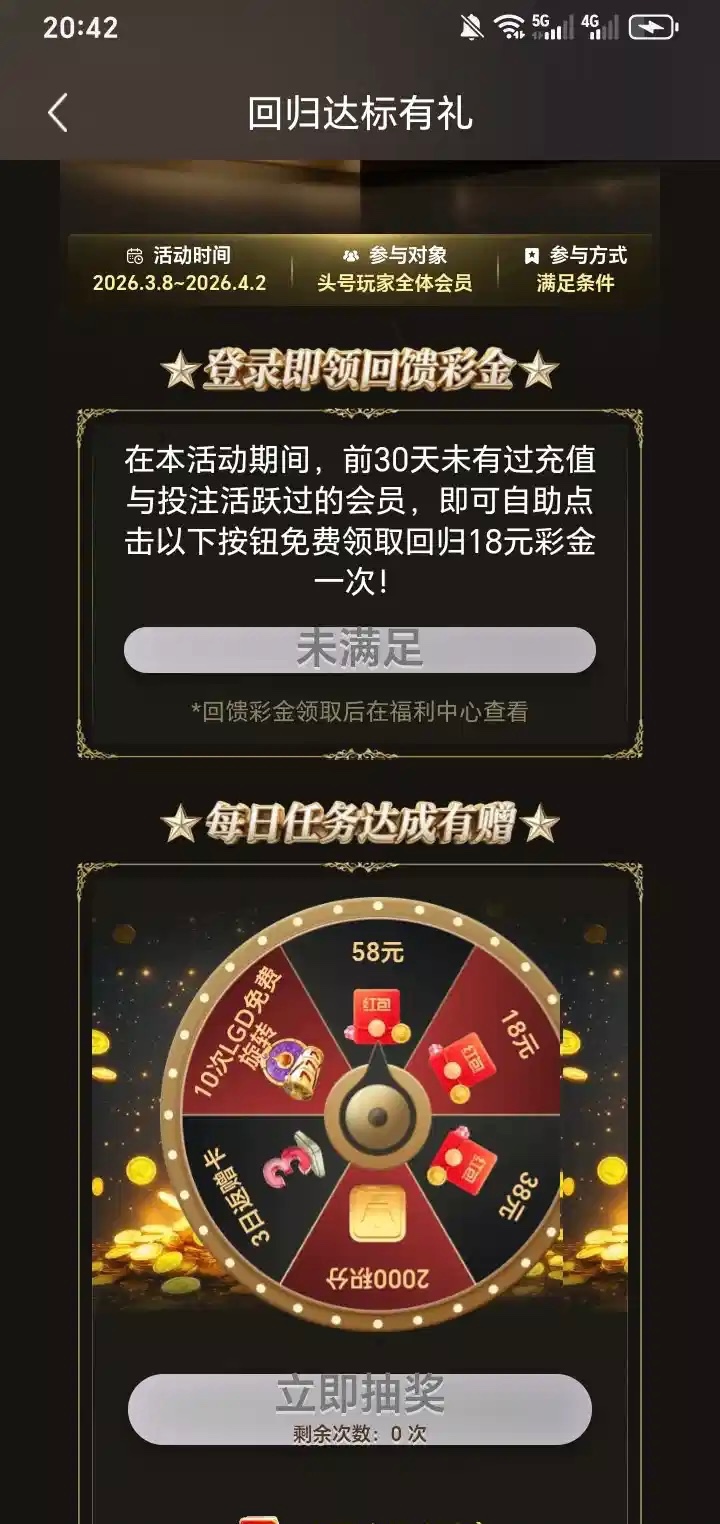 【头号-最近30天未投注回归彩金】