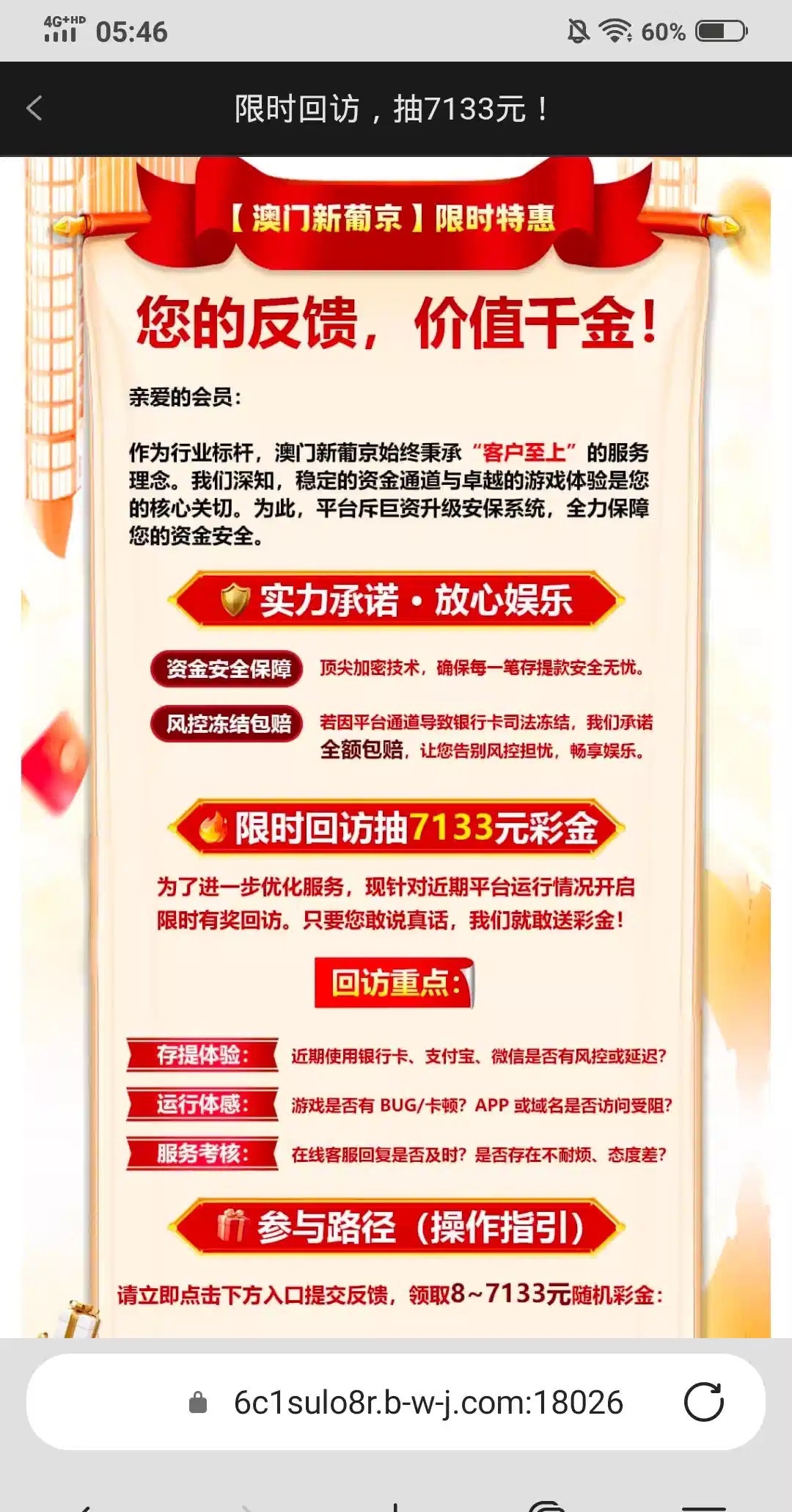 有奖反馈自己去反馈,本来不觉得能给彩金,没想到给了,链接7133.com